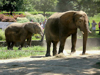 On May 7 we went to see the elephant crossing exhibit for the first time and were very impressed! It just opened May 5. There are five elephants now and five acres for the exhibit! When we arrived, the trainer was calling the 11-ft. tall male elephant over to cross to the other side so we got to see how the gate worked. It is so cool! It separates the two big sections of the exhibit and the elephants cross through one way and then the people can go across and walk in the same place the elephants did.